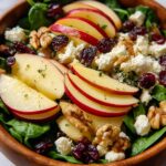 A fresh and vibrant Apple Cranberry Walnut Salad featuring mixed greens, sweet apples, dried cranberries, crunchy walnuts, and tangy feta cheese, tossed in a homemade apple cider vinaigrette. Perfectly suited for a light lunch or a festive fall side dish.