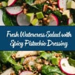 - Prepare the Salad: In a large bowl, combine the watercress, thinly sliced apple, thinly sliced radishes, and roughly chopped roasted pistachios. Toss gently to mix the fresh ingredients evenly.