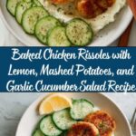 If you’re looking for a meal that’s inviting, packed with flavor, and hits all the comfort-food notes, I cannot recommend the Baked Chicken Rissoles with Lemon, Mashed Potatoes, and Garlic Cucumber Salad Recipe enough. It’s one of those dishes that feels special yet is super approachable to make. So grab your ingredients, get baking, and enjoy the wonderful smiles it’s sure to bring around your table.