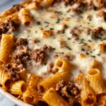 This Baked Rigatoni with Sausage and Boursin Cheese is a comforting Italian-inspired casserole featuring al dente rigatoni pasta tossed in a savory sausage and tomato sauce enriched with creamy garlic-herb Boursin cheese. Topped with melted mozzarella and Parmesan, this hearty dish bakes to golden perfection, making it an ideal meal for family dinners or special gatherings.