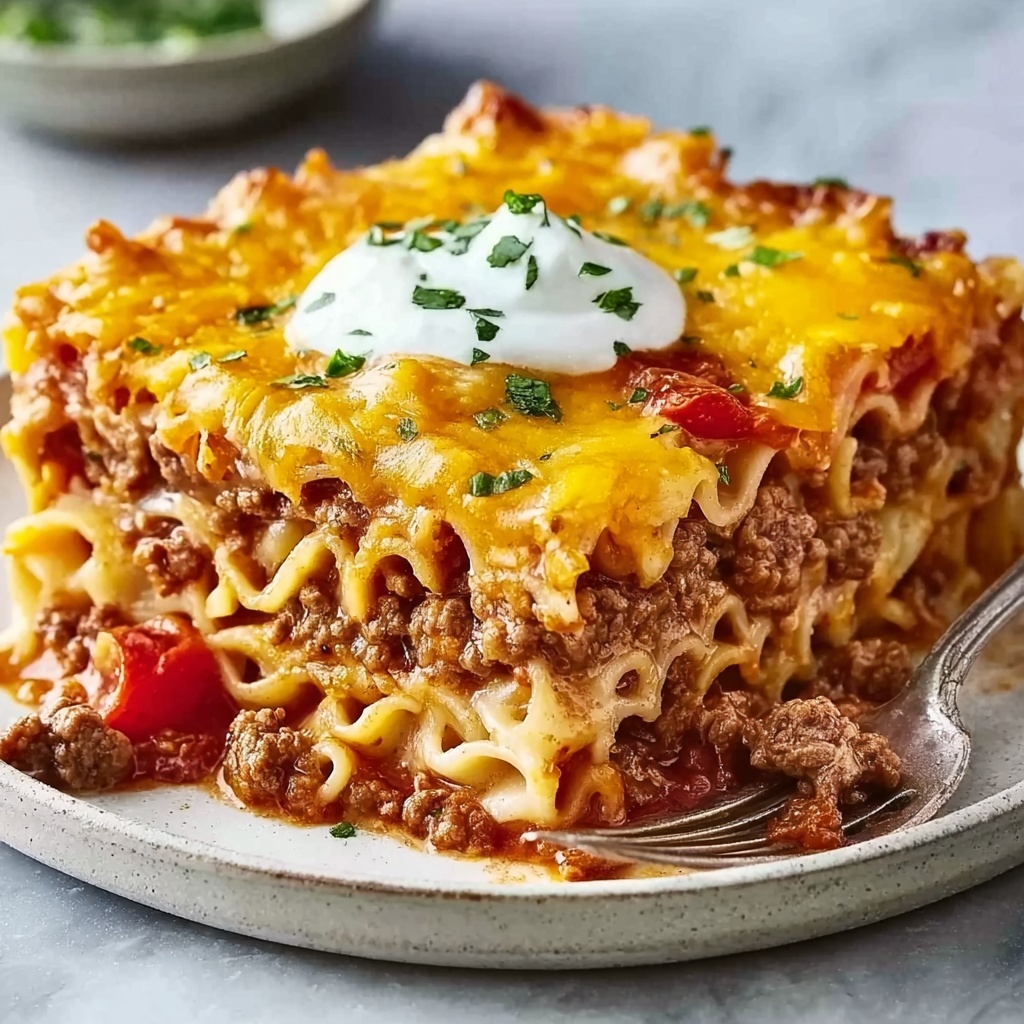 Gathering straightforward ingredients is half the fun of this recipe, and each one plays a vital role in building the casserole’s deep flavors and textures. From the savory ground beef to the sharp cheddar and creamy sour cream, this list is proof that you don’t need complicated components to impress your taste buds.