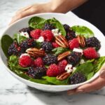 If you’re craving a salad that bursts with vibrant colors, bold textures, and a perfect balance of sweet and savory flavors, then you’re going to love this Berry Spinach Salad with Prosciutto, Pecans, Feta, and Balsamic Glaze Recipe. It’s a fresh, dazzling combination of crisp baby spinach, juicy strawberries, and blackberries, all topped with salty prosciutto, crunchy toasted pecans, tangy feta cheese, and a luscious balsamic glaze that ties every bite together beautifully. This salad is more than just a side dish—it’s a celebration of flavors that feels both special and effortlessly elegant.