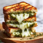 This Best Pesto Grilled Cheese recipe combines the rich flavors of fresh mozzarella, provolone or white cheddar, and vibrant basil pesto, all sandwiched between buttery slices of sourdough or Italian bread. Optional tomato slices add a fresh touch, while a pinch of black pepper enhances the flavor. Perfectly cooked on the stovetop until golden and melty, this gourmet grilled cheese is a delightful comfort food with a sophisticated twist.