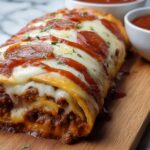 This Meat Lovers Pizza Bread is a flavorful and hearty dish that combines seasoned ground beef, pepperoni, and a blend of cheeses wrapped in a braided pizza dough. Perfect for a crowd, it’s baked until golden brown and served with warm pizza sauce for dipping, making it a delicious treat for any pizza lover.