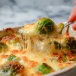 This Brussels Sprouts Gratin is a creamy, cheesy baked side dish featuring tender Brussels sprouts coated in a rich Gruyère and Parmesan cheese sauce, topped with a crispy Parmesan breadcrumb crust. Perfectly golden and bubbling fresh from the oven, it’s an elegant yet simple dish ideal for holiday dinners or everyday meals.