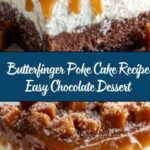 This Butterfinger Candy Bar Poke Cake is a decadent chocolate dessert featuring a moist chocolate cake base soaked with a luscious caramel and sweetened condensed milk mixture, topped with creamy whipped topping and crunchy crushed Butterfinger candy bars. Perfect for chocolate lovers who enjoy a rich, layered treat with a delightful combination of textures and flavors.