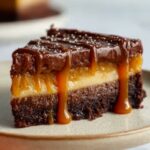 - Top with Remaining Brownie Batter: Spoon the remaining brownie batter over the caramel layer as evenly as possible, allowing some blending for a marbled effect.
