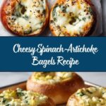 These Cheesy Spinach-Artichoke Bagels combine creamy, savory spinach and artichoke filling with melty mozzarella and Parmesan cheeses on toasted bagel halves. Perfect for a flavorful breakfast or snack, they’re easy to prepare and baked to golden, bubbly perfection.