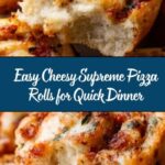 Cheesy Supreme Pizza Rolls are a delightful appetizer or snack featuring rolled pizza dough filled with a flavorful blend of mozzarella, cheddar, sausage, pepperoni, and fresh vegetables, baked to golden perfection and perfect for dipping in marinara sauce.