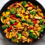 This Chicken and Vegetables Skillet is a quick, healthy, and flavorful one-pan meal perfect for busy weeknights. Tender pieces of chicken breast are seasoned and seared to golden perfection, then combined with a colorful medley of fresh broccoli, zucchini, bell peppers, and onions. The dish is enhanced with a blend of aromatic spices and finished with a splash of low sodium chicken broth to create a delicious, wholesome dinner ready in just 35 minutes.