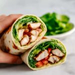 - Wrap and Serve: Roll each tortilla tightly to enclose the fillings, then cut them in half for easier eating. Serve immediately and enjoy your flavorful chicken veggie wraps.