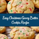 Delight in these Christmas Gooey Butter Cookies, a festive and easy-to-make treat featuring a soft, creamy center made with cream cheese and a vanilla cake mix base. Perfect for holiday celebrations, these cookies are coated in powdered sugar and decorated with red and green sprinkles for a joyful touch.