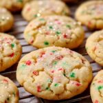 Preheat your oven to 350°F (175°C) and line a baking sheet with parchment paper. Scoop out tablespoon-sized portions of dough and roll them into balls. Next, roll each ball in powdered sugar for that soft, sweet crust. For the festive flair, gently press the balls into your choice of red and green sprinkles or sanding sugar to add a cheerful pop of holiday color and texture.