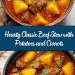 This Classic Beef Stew recipe features tender chunks of beef chuck simmered in a rich broth with aromatic vegetables, red wine, and herbs. Slow-cooked for hours to develop deep, comforting flavors, this hearty dish is perfect for a satisfying family meal, especially when served warm after allowing the stew to rest for optimal flavor melding.