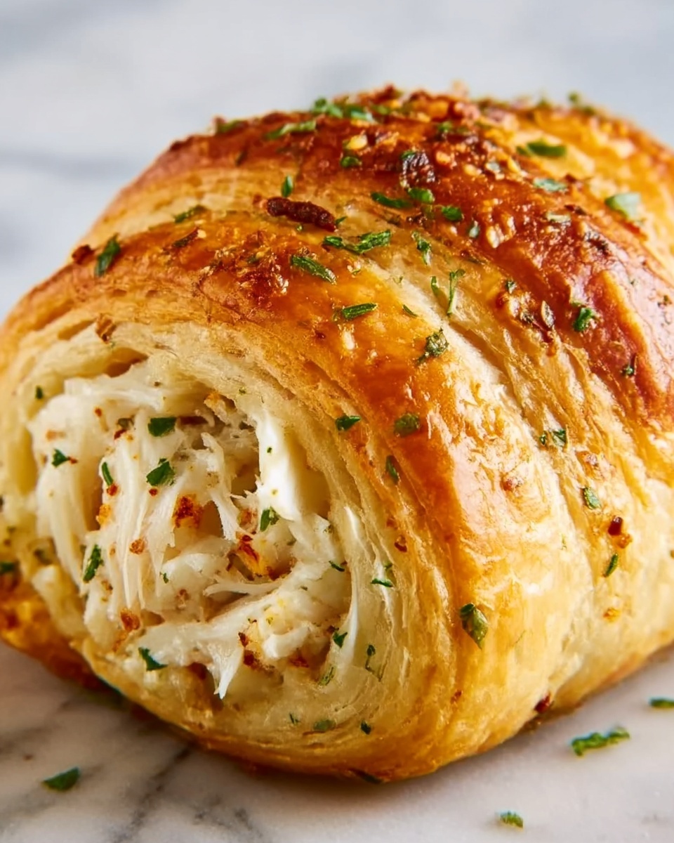 These Crab & Cheese Filled Crescent Rolls are a delicious and easy-to-make appetizer that combines creamy cheese, tender crab meat, and flaky crescent roll dough. Perfect for parties, snacks, or a flavorful side, they bake to a golden brown perfection with a buttery finish and a touch of fresh parsley garnish.