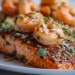 This Crab and Shrimp Stuffed Salmon recipe features tender salmon fillets generously filled with a savory blend of lump crab meat, chopped shrimp, cream cheese, and flavorful seasonings. Baked to perfection, this elegant main course combines delicate seafood flavors with a creamy, tangy filling, making it an impressive yet easy dish for special occasions or weeknight dinners.
