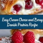 These Cream Cheese and Berry Danish Pastries are flaky, buttery, and filled with a rich cream cheese mixture topped with sweet berry preserves. Perfect for breakfast or brunch, they are easy to prepare using puff pastry sheets and baked to golden perfection. Finished with a dusting of powdered sugar and optional fresh berries, these pastries combine creamy, tangy, and fruity flavors in every bite.