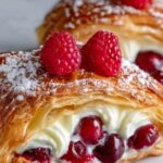 These Cream Cheese and Berry Danish Pastries are flaky, buttery, and filled with a rich cream cheese mixture topped with sweet berry preserves. Perfect for breakfast or brunch, they are easy to prepare using puff pastry sheets and baked to golden perfection. Finished with a dusting of powdered sugar and optional fresh berries, these pastries combine creamy, tangy, and fruity flavors in every bite.