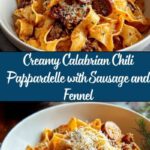 This Creamy Calabrian Chili Pappardelle with Beef Sausage & Fennel is a rich and flavorful Italian-American pasta dish that combines spicy Calabrian chili paste with savory Italian beef sausage and sweet fennel. Cooked al dente pappardelle is tossed in a creamy sauce made with heavy cream, Parmesan cheese, and a splash of white wine, resulting in a comforting, slightly spicy, and aromatic meal perfect for a satisfying dinner.