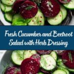 A refreshing and vibrant Crisp Cucumber and Beetroot Salad featuring thinly sliced cucumbers and cooked beetroots, tossed in a flavorful herb dressing made with fresh dill, parsley, olive oil, and red wine vinegar. This Mediterranean-inspired vegetarian and gluten-free salad is perfect for a light meal or side dish and can be served chilled or at room temperature.