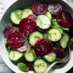 A refreshing and vibrant Crisp Cucumber and Beetroot Salad featuring thinly sliced cucumbers and cooked beetroots, tossed in a flavorful herb dressing made with fresh dill, parsley, olive oil, and red wine vinegar. This Mediterranean-inspired vegetarian and gluten-free salad is perfect for a light meal or side dish and can be served chilled or at room temperature.