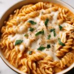 This comforting Crockpot Chicken Parmesan Soup combines the rich flavors of classic chicken parmesan with the ease of slow cooking. Tender chicken breasts simmer in a savory tomato broth with Italian seasoning, garlic, and chicken broth, then enriched with Parmesan, cream, and rotini pasta. Topped with melted mozzarella cheese and crispy buttery bread crumbs, this hearty soup is perfect for cozy family dinners.