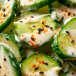 Start by thinly slicing your cucumbers using a sharp knife or a mandolin for uniform pieces. If you want to avoid excess water diluting the flavors, lightly salt the slices and let them sit for 5 minutes, then gently pat dry with paper towels. This helps keep the salad crisp and prevents it from becoming soggy.