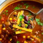 The best part of serving this soup is personalizing each bowl with your preferred garnishes. Shredded cheese melts beautifully on top, while sour cream adds creamy contrast to the spiced broth. Brighten things up with sliced green onions and a handful of fresh cilantro. Don’t forget a squeeze of lime—its tangy zip lifts all the flavors wonderfully. And for that fun crunch, garnish with crispy tortilla chips right before serving.