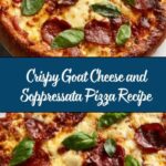 This Goat Cheese and Soppressata Pizza features a crispy golden crust topped with rich mozzarella, tangy crumbled goat cheese, and spicy soppressata slices. Finished with a drizzle of olive oil, dried oregano, fresh basil, and optional red pepper flakes for a perfect balance of flavors, this easy-to-make pizza is ideal for a quick, delicious meal.