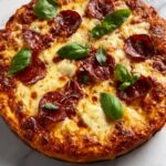 This Goat Cheese and Soppressata Pizza features a crispy golden crust topped with rich mozzarella, tangy crumbled goat cheese, and spicy soppressata slices. Finished with a drizzle of olive oil, dried oregano, fresh basil, and optional red pepper flakes for a perfect balance of flavors, this easy-to-make pizza is ideal for a quick, delicious meal.