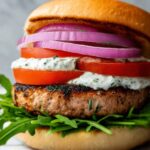 - Assemble the Burgers: Spread a generous amount of the chilled tzatziki sauce on both the top and bottom halves of each toasted bun. Layer with arugula or baby spinach, place a cooked turkey patty on the bottom half, add slices of tomato and thinly sliced red onion, and sprinkle crumbled feta cheese if desired. Close with the top bun and serve immediately for a fresh, flavorful meal.