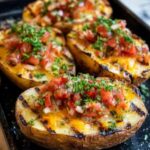 The magic of the Grilled Baked Potatoes Recipe really shines when you dress them up with tasty garnishes. Butter melts into the warm potato flesh, sour cream adds a cooling contrast, and shredded cheese brings an ooey-gooey element. Sprinkle chopped chives or green onions for a pop of color and freshness, and toss on crispy bacon bits for a delightful crunch and smoky boost.