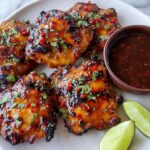 This Grilled Thai Chicken recipe features tender boneless, skinless chicken thighs marinated with a flavorful Thai seasoning and a tangy sweet chili glaze. Grilled to perfection over medium-high heat, this dish is infused with vibrant flavors from soy sauce, lime juice, sriracha, and fresh cilantro, making it a quick and delicious meal perfect for any occasion.