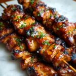These Grilled Thai Chicken Skewers feature tender marinated chicken pieces infused with authentic Thai flavors, grilled to perfection, and served with a creamy, spicy peanut sauce. Perfect for a flavorful and easy-to-make meal that’s full of vibrant seasoning and a delightful balance of sweet, salty, and spicy tastes.