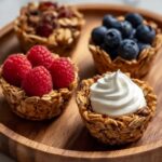- Fill Granola Cups: Fill each granola cup with your choice of filling such as a scoop of yogurt, fresh berries, a drizzle of nut butter, or honey/maple syrup to enhance flavor and texture.