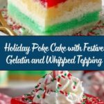 This festive Holiday-Inspired Poke Cake is a delightful dessert featuring moist white cake punctuated with vibrant red and green gelatin filling. Perfect for celebrations, this easy-to-make cake is topped with whipped cream and garnished with holiday sprinkles or crushed candy canes, bringing a colorful and flavorful treat to your holiday table.