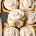 Make sure the rolls have cooled completely—about 30 minutes minimum—before frosting. Warm rolls will melt the cream cheese frosting, making it runny instead of luscious and thick.