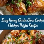Delicious and tender Honey Garlic Slow Cooker Chicken Thighs, cooked low and slow in a sweet and savory honey garlic sauce. This easy recipe features boneless skinless chicken thighs simmered in a flavorful blend of soy sauce, honey, ketchup, garlic, ginger, and a hint of vinegar. Perfect for a hands-off dinner served over rice and garnished with scallions and sesame seeds.