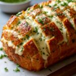 Serve the bread sliced on a rustic wooden board alongside bowls of dipping oils infused with garlic, rosemary, or chili flakes. You can also hollow out the loaf to create a cheesy bread bowl filled with warm tomato soup or spinach artichoke dip.