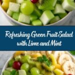 A refreshing and vibrant Leprechaun Fruit Salad featuring a delightful combination of green grapes, kiwi, green apple, and honeydew melon, lightly tossed with lime juice and garnished with fresh mint leaves. This quick and easy-to-make fruit salad is perfect for a healthy snack or a festive St. Patrick’s Day treat.