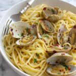 For a rustic yet elegant presentation, serve the pasta directly from a wide, shallow bowl with the clams arranged on top to show off their shells. Another fun idea is to serve in individual mini casserole dishes for an intimate dinner. Freshly grated Parmesan is not traditional but can be offered on the side for those who love that extra cheesy note.