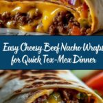 These Nachos Cheese Beef Wraps are a Tex-Mex delight featuring seasoned ground beef, melty nacho cheese, and crunchy tortilla chips all wrapped inside warm flour tortillas. Pan-toasted until golden and crispy, these wraps combine gooey cheese, fresh veggies, and a subtle kick of jalapeños for a satisfying meal perfect for lunch or dinner.