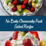 This No Bake Cheesecake Fruit Salad is a refreshing and creamy dessert that combines the smoothness of cheesecake with the natural sweetness of fresh mixed fruits. Easy to prepare without any baking, it’s perfect for warm days or when you want a quick, crowd-pleasing sweet treat. The luscious cream cheese mixture, lightly sweetened and flavored with lemon and vanilla, is folded with vibrant fruits like strawberries, blueberries, raspberries, and kiwi, creating a delightful balance of flavors and textures.