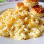 - Serve: Remove from the oven and let cool for a few minutes before serving to allow the mac and cheese to set slightly for easier portioning.