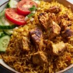 Fresh herbs like parsley or cilantro scattered on top add brightness and a pop of green to this golden rice dish, visually inviting and flavorful. Don’t forget a generous squeeze of lemon juice from fresh wedges — the citrus cuts through the richness and balances the bold spices beautifully.