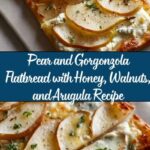 If you’re searching for a dish that feels fancy yet comes together quickly, you’re going to love this Pear and Gorgonzola Flatbread with Honey, Walnuts, and Arugula Recipe. It’s a perfect balance of sweet, savory, creamy, and crunchy—all on a crisp flatbread base. The ripe pears bring a juicy sweetness, the Gorgonzola adds a tangy creaminess, honey drizzles a touch of floral sweetness, walnuts introduce earthy crunch, and peppery arugula finishes it off with a fresh bite. This flatbread is such a versatile crowd-pleaser whether for a cozy meal at home or an elegant dinner party.*