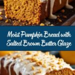 This Pumpkin Bread With Salted Brown Butter Glaze is a moist and flavorful autumn treat featuring warm spices and rich pumpkin puree. The bread is tender and perfectly spiced, complemented by a luscious, nutty brown butter glaze with a touch of flaky sea salt, adding a delightful contrast of sweet and savory notes. Ideal for fall breakfasts, snacks, or dessert.