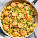 A quick and flavorful Shrimp Fried Rice recipe that combines succulent shrimp, fresh vegetables, scrambled eggs, and perfectly cooked rice, all stir-fried together with aromatic seasonings and soy sauce for a delicious meal ready in just 20 minutes.