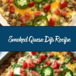 This Smoked Queso recipe combines creamy Velveeta and Pepper Jack cheeses with bold Rotel tomatoes, pickled jalapenos, sautéed onions, garlic, and savory cooked ground beef. Slow-cooked on a grill at a low temperature, this dip develops smoky, rich flavors perfect for serving with chips or veggies at your next gathering or game day event.
