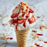 How to Serve Strawberry Crunch Cheesecake Cones Recipe